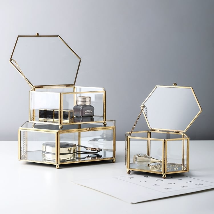【お取り寄せ】ガラスジュエリーボックス 六角形 北欧