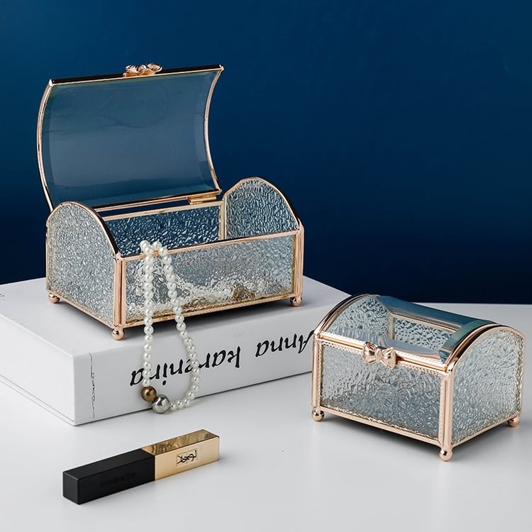 フタの部分は透明なガラスになっており、取り出したいアクセサリーをすぐに見つけられるのも嬉しいポイント。