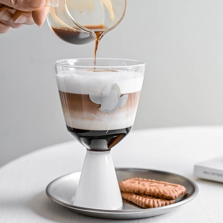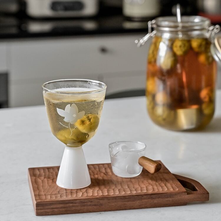 耐熱性に優れたガラス製を使用しているため、温かい飲み物を入れてご使用いただくことも可能です。
