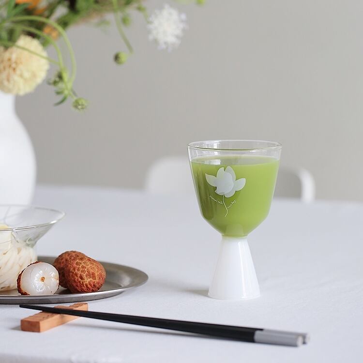 ガラス台に高級感のある白翡翠をベースにデザインした「白色ベースグラス」。