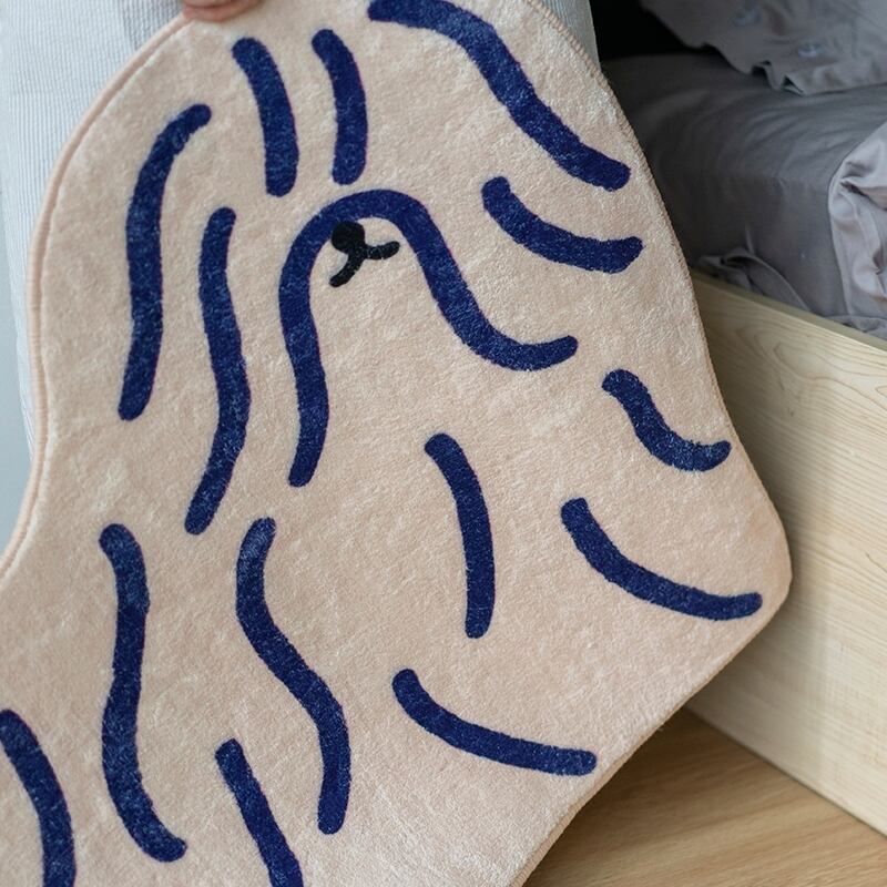 犬の形に裁断した特殊なデザインが特徴の「ドッグデザインラグ」。