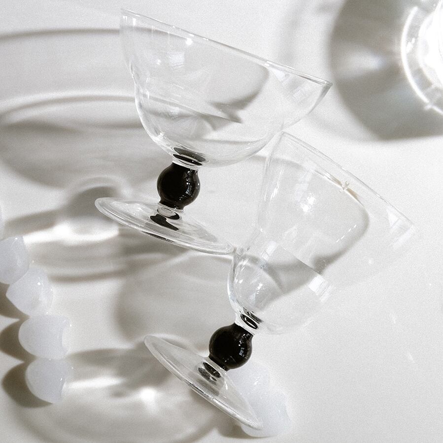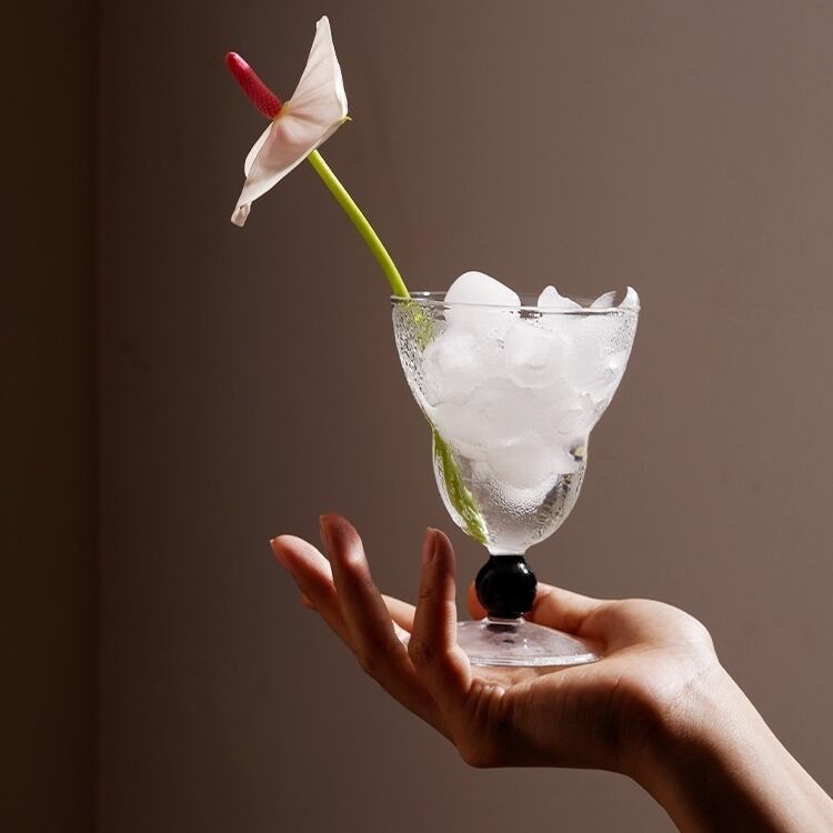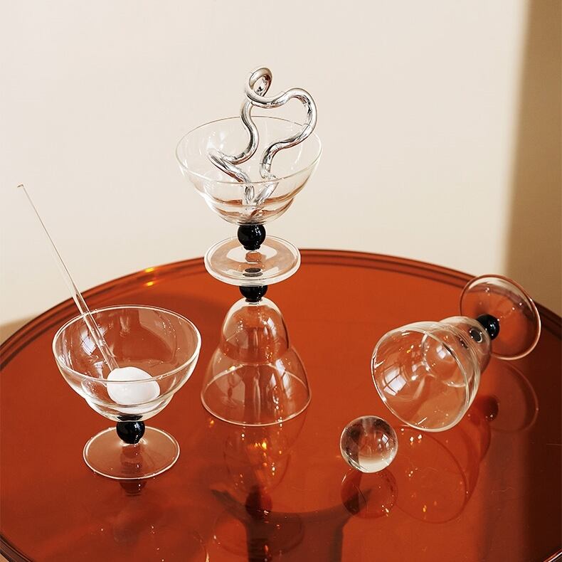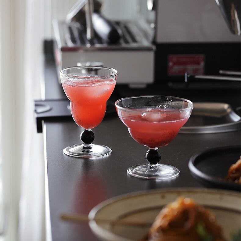 グラスの脚の部分には黒いガラスビーズをアクセントに加えており、細部までスタイリッシュな見た目を愉しむことが可能です。