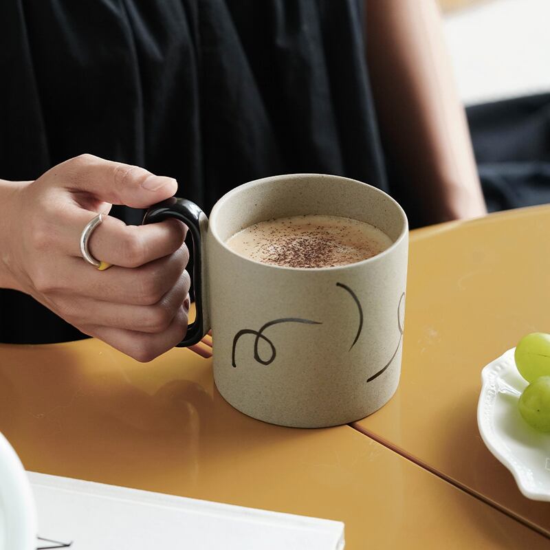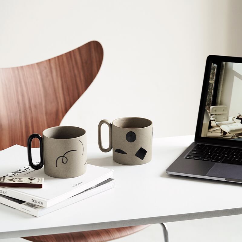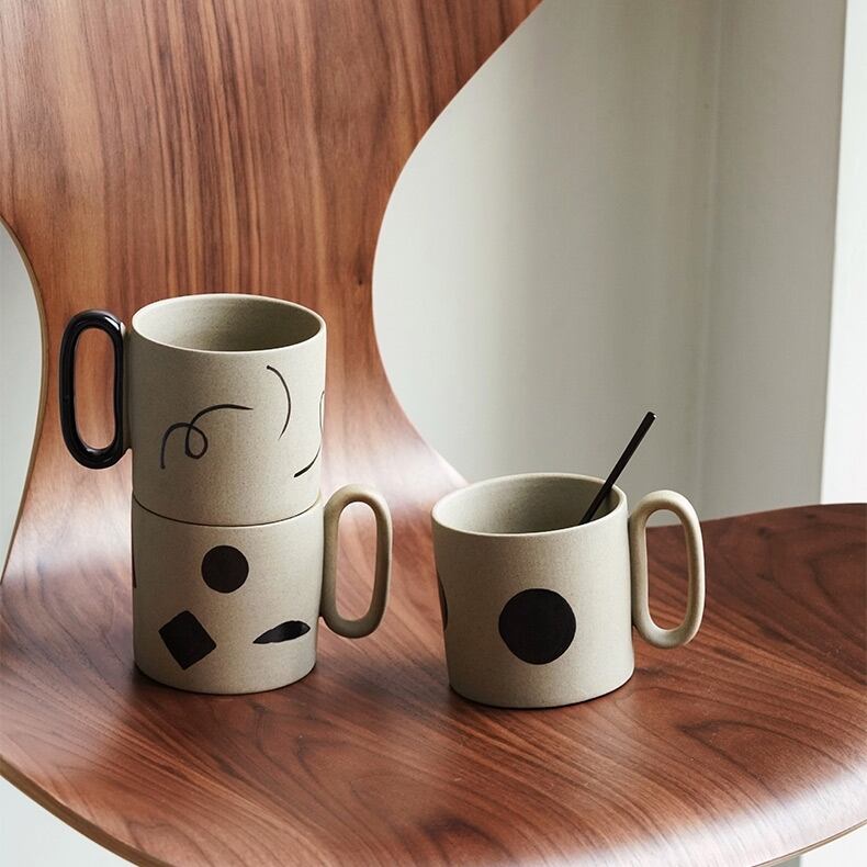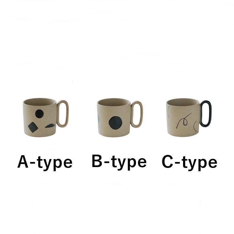 焼き物らしいやわらかい色がやさしい印象を与える「幾何学パターンマグ」。