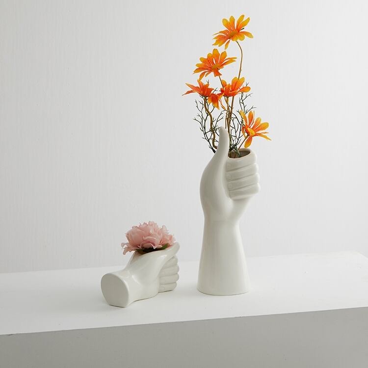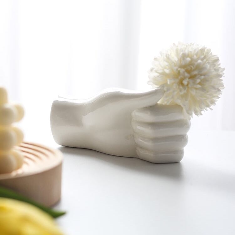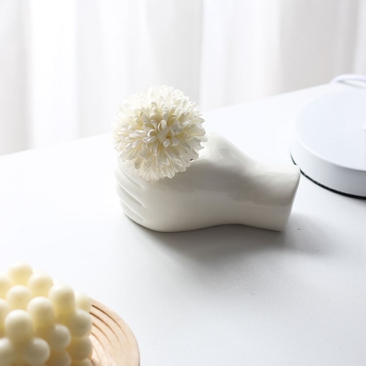 花を手の穴にはめると、花を持っているようなデザインになる「ハンドフラワーベース」。