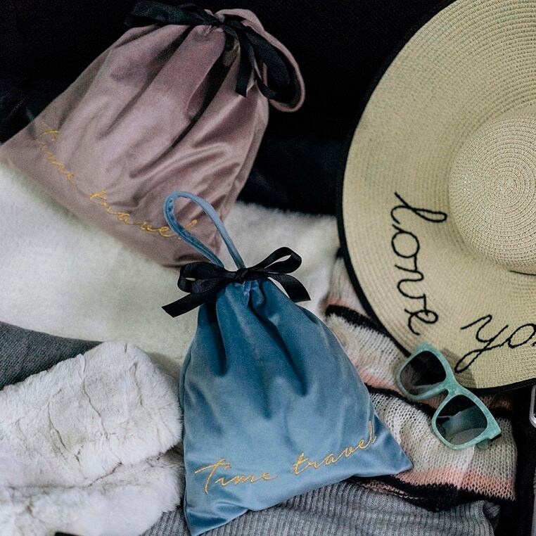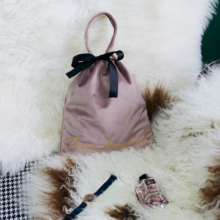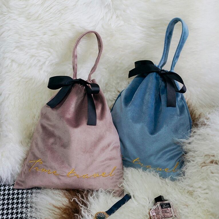 肌触りのいいベロア調巾着袋・両絞りタイプで、口の開け閉めがスムーズにお使いいただけます。