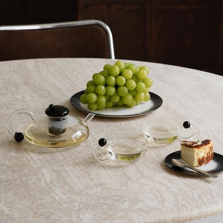 ガラスの器はお茶の色合いを目で楽しみながら、ティータイムを楽しめます。