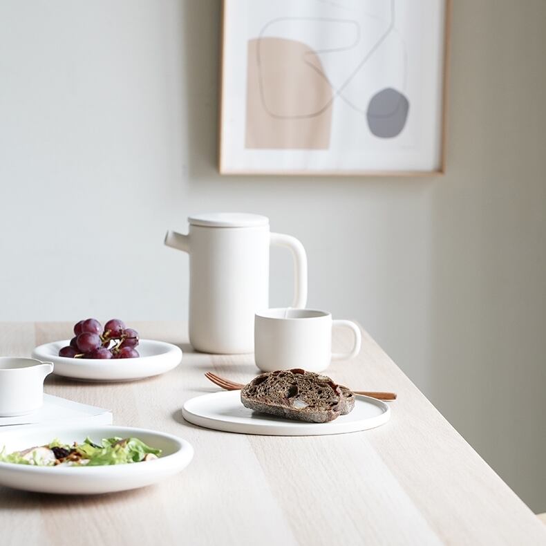 シンプルで洗練されたデザインと柔らかいホワイトカラーがどんなテイストの食卓にも馴染みます。