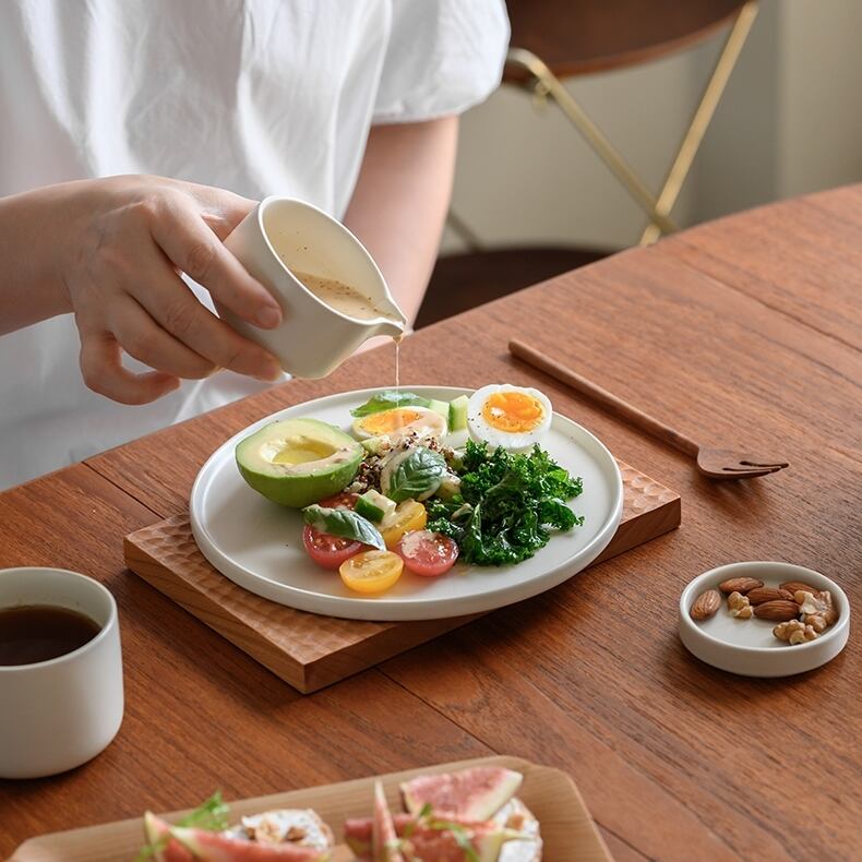 洋陶器と和陶器の良いところを併せ持ち、手に馴染むその形状はあたたかい食卓を演出します