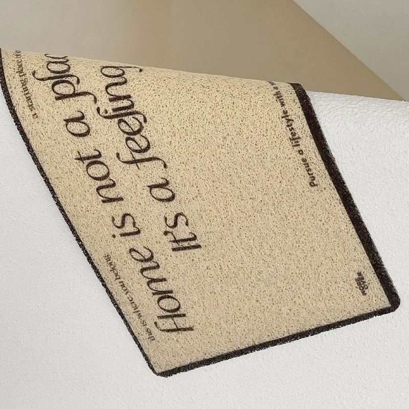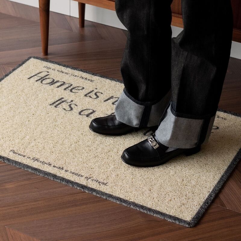 スタイリッシュなフォントとデザインで、様々なテイストの空間にマッチする「アートドアマット」。
