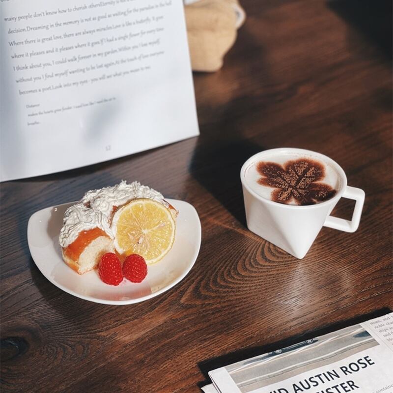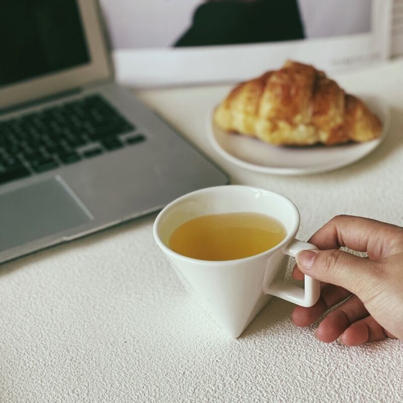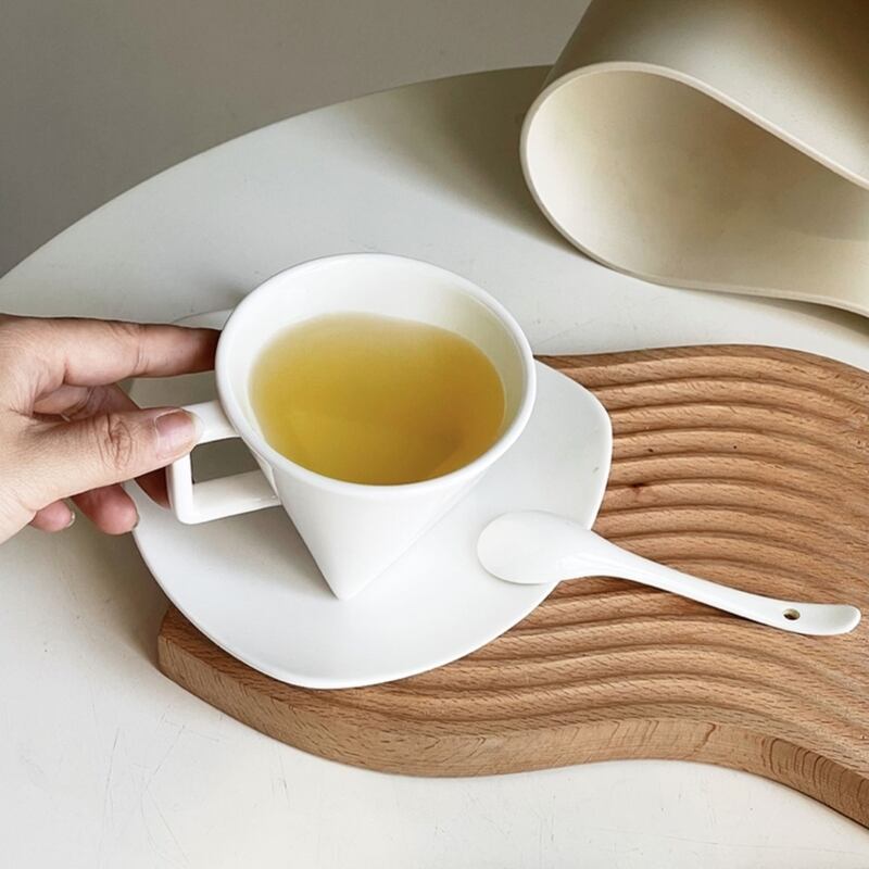 三角形のボディが特徴の「Geometric Coffee Cup & Saucer Set」。