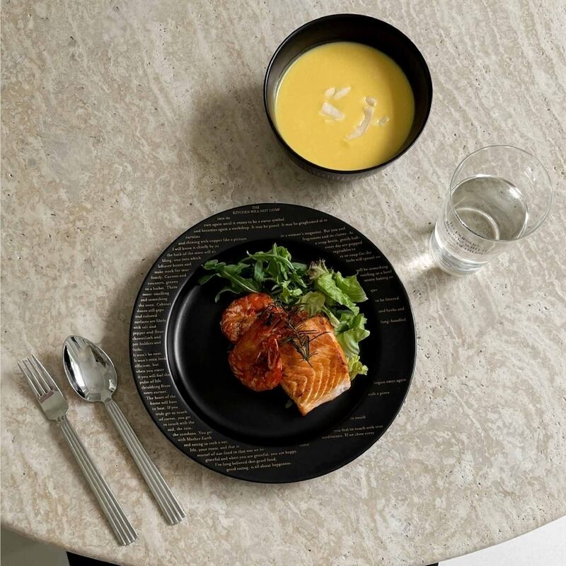 また、温かみのあるマットな背景と映えるカラーの英文が、テーブルと料理をぐっと引き立たせます。