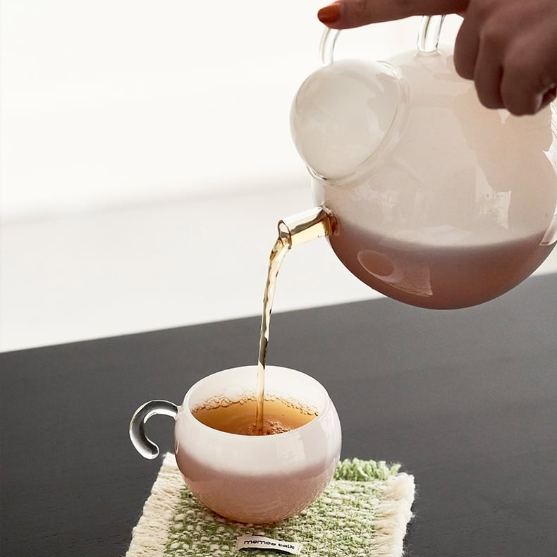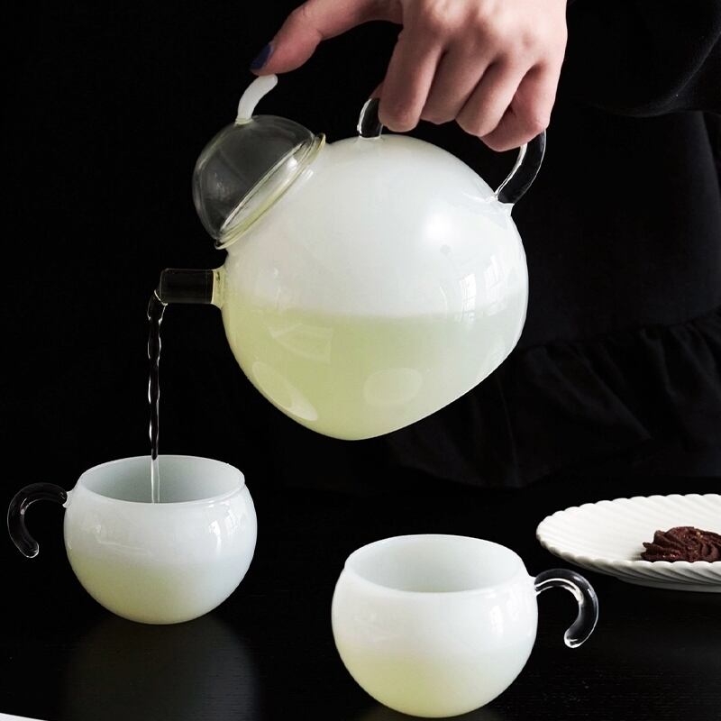 コロンとした丸いフォルムが印象的な「Fat Pear Glass Teapot Set」。